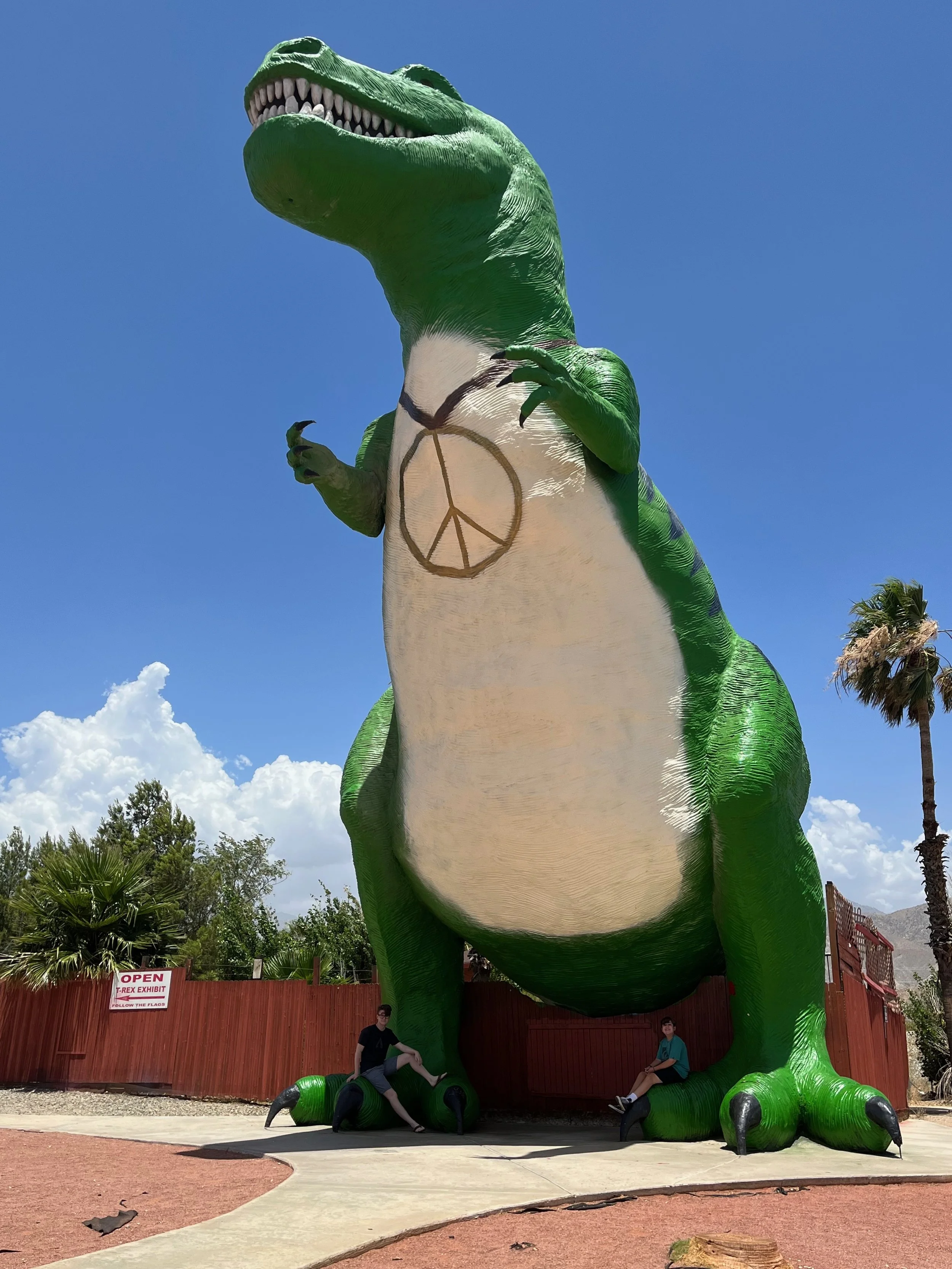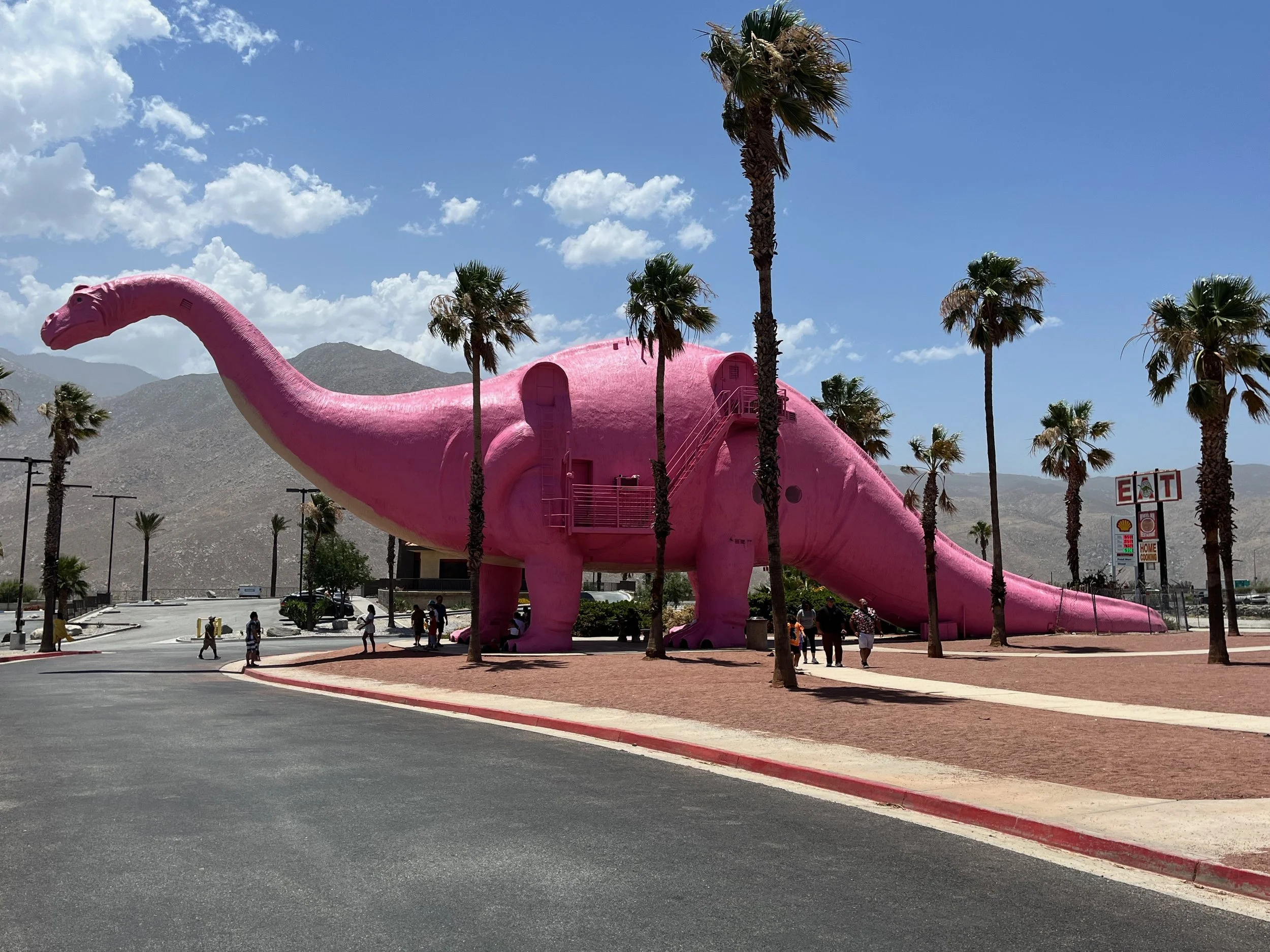 The Cabazon Dinosaurs, also known as Claude Bell’s Dinosaurs, are a set of enormous concrete statues located off of Interstate 10 in Cabazon, California.